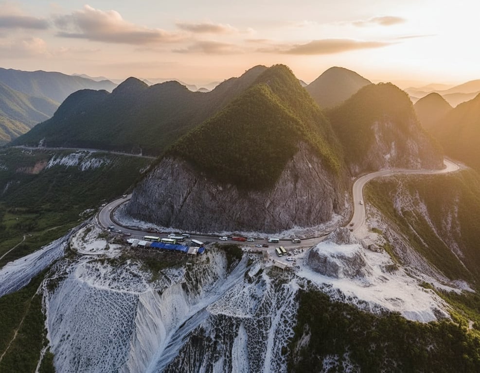 Da Trang Pass features distinctive white limestone cliffs and provides a scenic transition between lowland towns and upland terrain