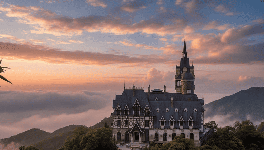 Quán cà phê tọa lạc trên đỉnh núi cao, nơi du khách có thể phóng tầm mắt bao trọn núi rừng và chiêm ngưỡng khung cảnh lâu đài ấn tượng. Bạn có thể nhâm nhi một tách đồ uống nóng, lặng ngắm biển mây bồng bềnh và tận hưởng không khí trong lành giữa thiên nhiên hùng vĩ.