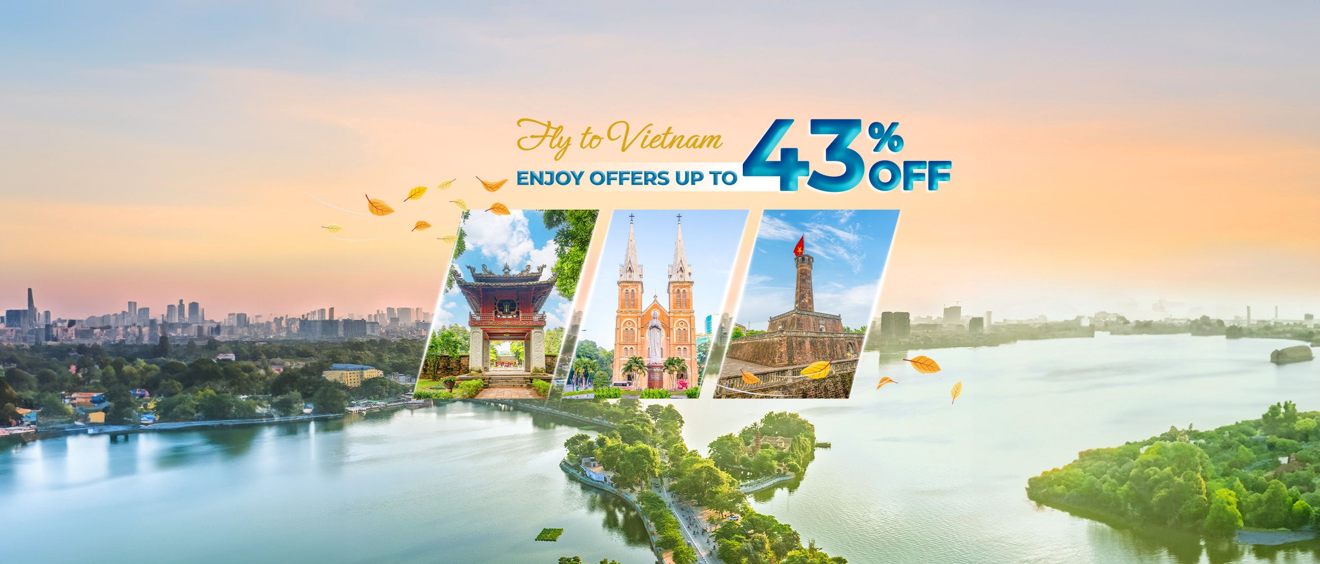 With Vietnam Airlines, your journey begins with comfort, style, and an unbeatable offer — enjoy up to 43% off on one-way fares from Denmark (except Copenhagen), Sweden, Finland, Norway, the Netherlands, Spain, the Czech Republic, Belgium, and Poland to Vietnam.