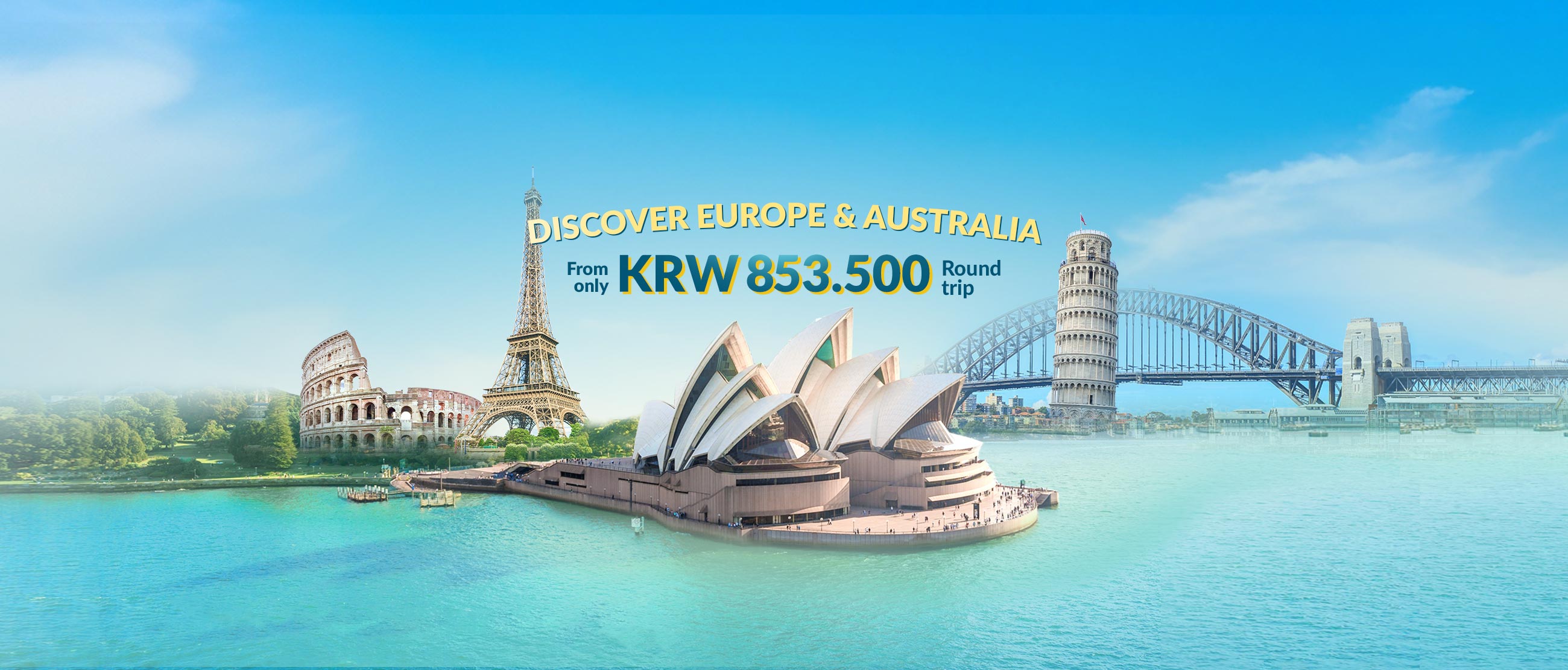 Vietnam Airlines presents a special offer for passengers departing from Busan and Seoul, flying to Europe and Australia with convenient connections via Hanoi or Ho Chi Minh City.