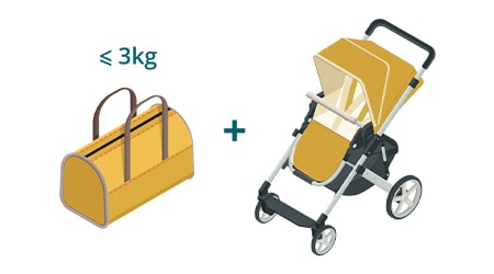 Carry-on baggage for children under two years old includes 1 piece and should not exceed 3kg (including food, milk, and nappy) and one compact stroller/cradle that fits inside an aircraft baggage compartment. If carry-on baggage compartments are out of place, strollers/cradles are transported as checked baggage (free of charge).