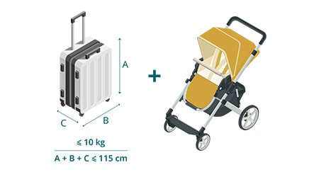 - From/To the Americas: 01 piece, with a maximum weight of 23kg (total 3 dimensions do not exceed 115cm) and one foldable stroller.