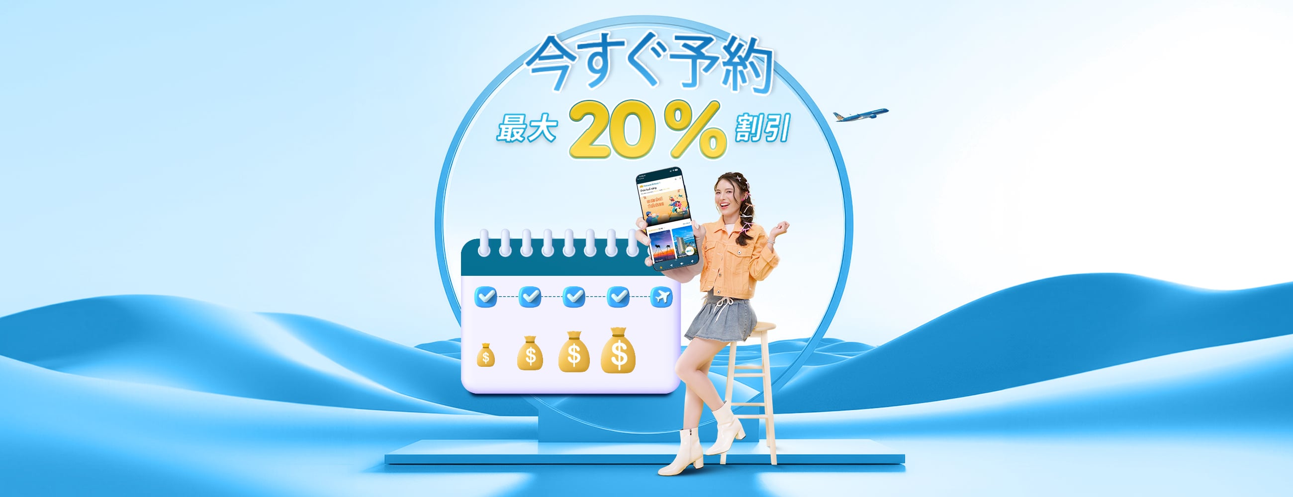 旅の計画を早く立てることは、素晴らしい旅の第一歩です。ベトナム航空では、「早期予約割引」キャンペーンとして、早く予約するほどお得になる 最大20%割引 をご用意。ご希望にぴったりのフライトを、ゆとりをもってお選びいただけます。