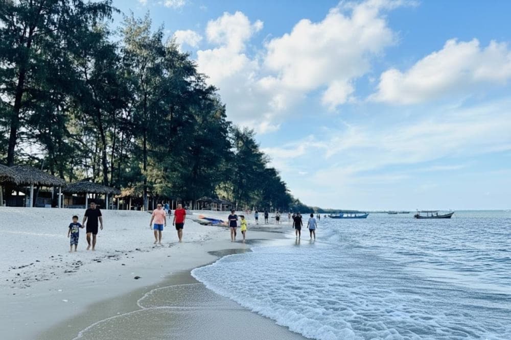 The special feature that makes Tra Co Mong Cai beach stand out is its unique geographical location, located close to the Vietnam - China border, where the mainland extends farthest into the sea in the Northeast. The space here has a harmonious beauty between the immense ocean, the green casuarina forest and the rolling mountains in the distance, creating a scene that is both majestic and poetic.
