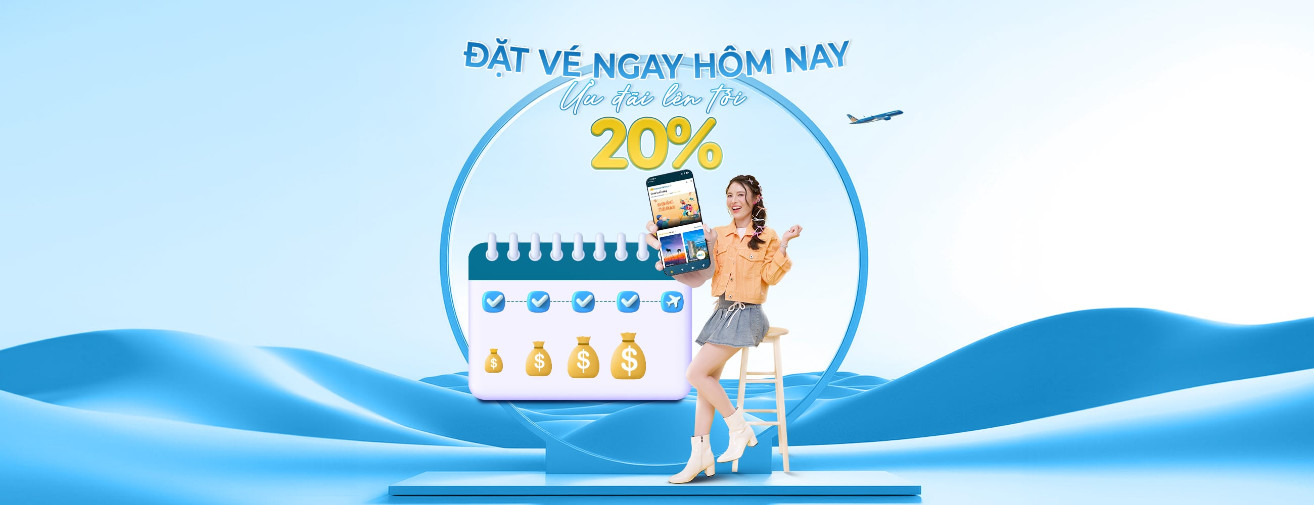 Lên kế hoạch sớm luôn là khởi đầu hoàn hảo cho mọi hành trình khám phá. Vietnam Airlines dành tặng tới Quý khách chương trình Mua sớm giá tốt – Đặt vé càng sớm, ưu đãi càng sâu lên đến 20%, giúp Quý khách thảnh thơi lựa chọn được lịch bay ưng ý.