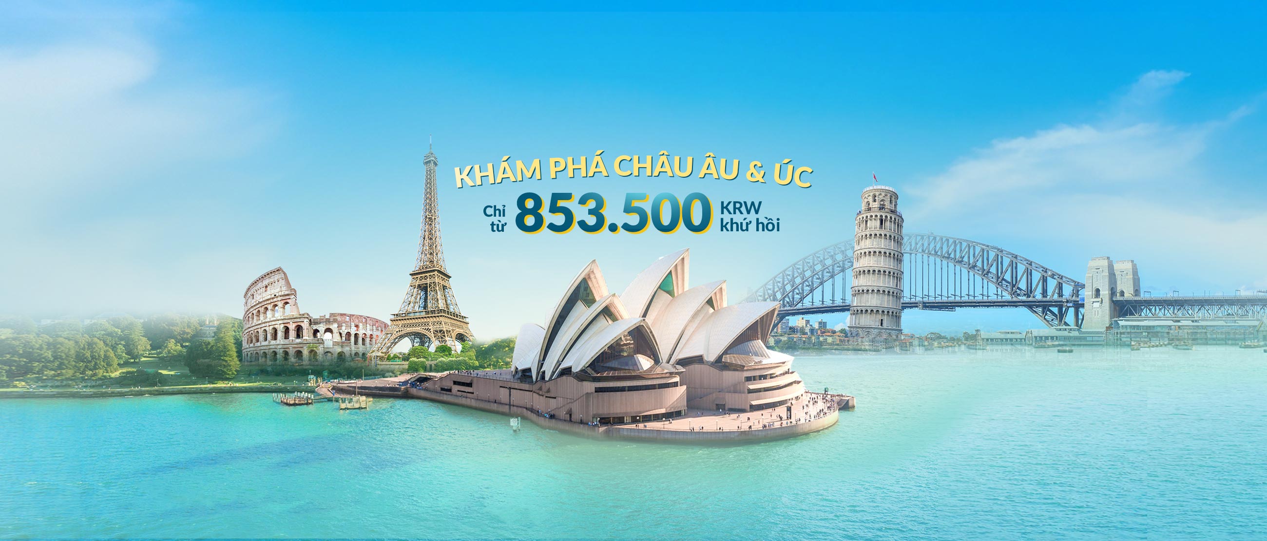 Vietnam Airlines mang đến chương trình ưu đãi đặc biệt cho hành khách khởi hành từ Busan và Seoul, bay đến Châu Âu và Úc – nối chuyến thuận tiện qua Hà Nội hoặc TP. Hồ Chí Minh.