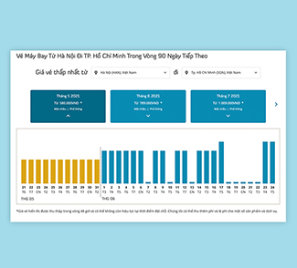 Riêng đối với vé máy bay một chiều, tính năng “giá theo tháng” cho phép bạn dễ dàng so sánh giá vé máy bay thấp nhất theo từng ngày trên hiển thị giá cả tháng.