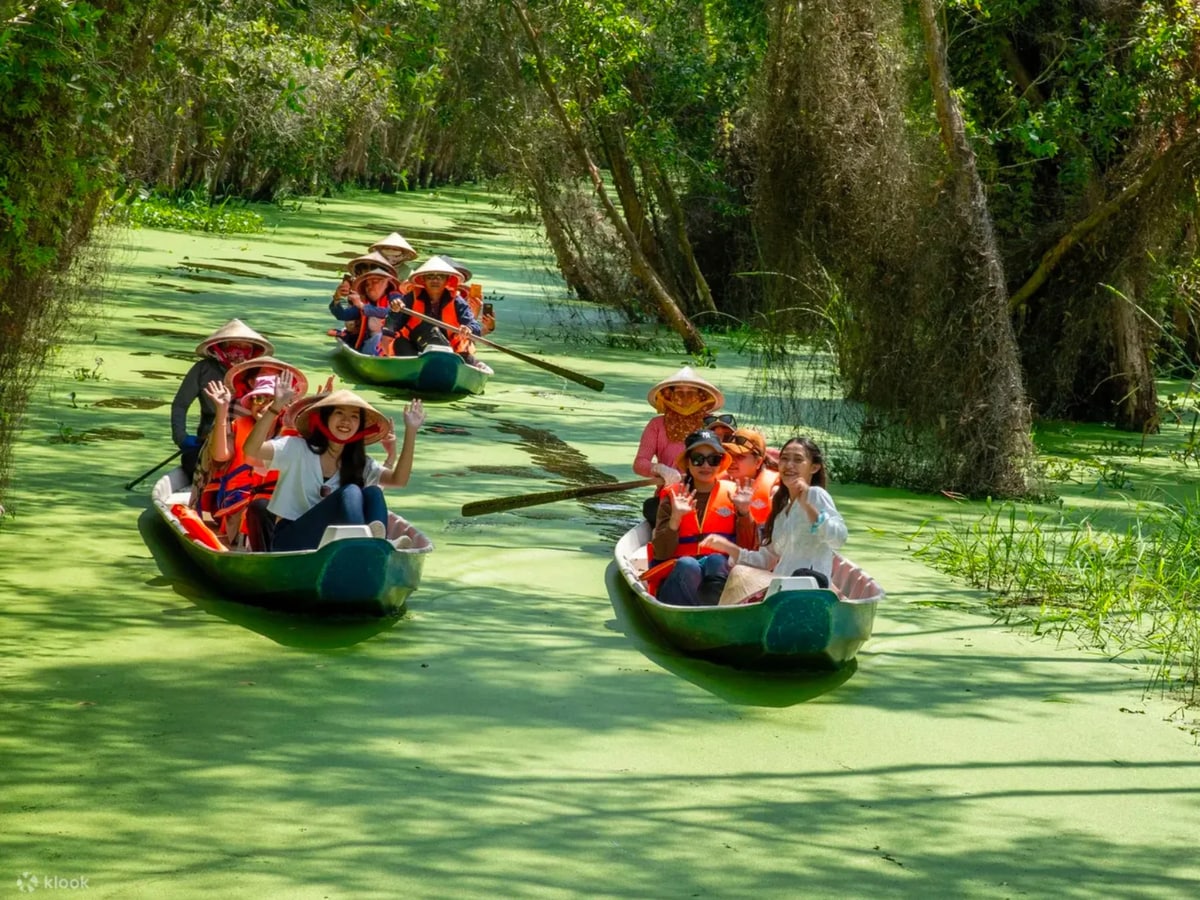 A boat ride through coconut-lined canals offers a glimpse into the daily rhythms of the delta – from locals paddling to market to kids waving from the riverbanks (Source: Internet)